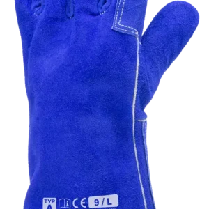 1WEL360 EUROWELD 360 védőkesztyű Leírás EUROWELD 360 kék marhahasíték, Kevlar szállal, gyapjú béléssel. Kék bőr erősítés a tenyéren, artéria védővel. Biztonsági mandzsetta hasítékbőrből, 15cm 9-es, 10-es és 11-es méretben kapható. Szín : Kék Besorolás : Speciális kesztyűk Előnyök : * hasított bőr megerősítés a tenyéren és a csuklórészen * kényelmes : puha, bolyhozott belső * hosszú élettartam (Kevlar…